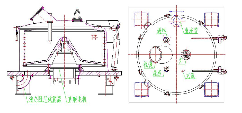 3.大翻蓋設計,平衡缸助力,開蓋輕便省力。上蓋設置,進料、水洗、視鏡、防爆燈、充氮口。